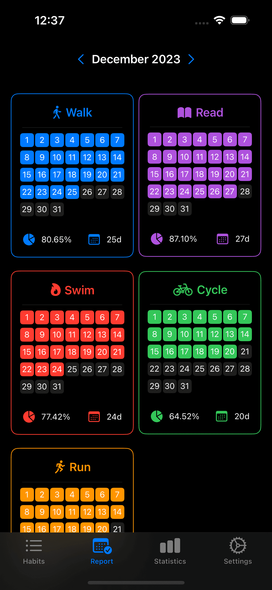 An iOS habit tracker app is designed to help users build and maintain good habits while breaking bad ones. The app features a user-friendly interface with simple, intuitive controls. Users can easily add new habits they want to track, set specific goals, and monitor their progress over time. Daily reminders and motivational quotes keep users engaged and focused on their objectives. The app also provides detailed statistics and progress reports, allowing users to see their achievements and areas for improvement. Its sleek design and customization options make it appealing for a wide range of users, from fitness enthusiasts to those looking to cultivate productive daily routines.